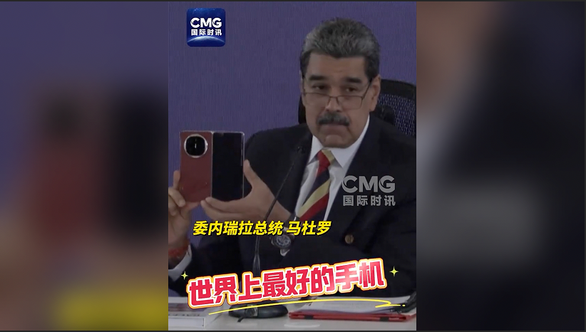 新闻发布会上,马杜罗还秀起了他使用的一部中国手机,称赞这是世界上最好的手机,“美国佬也窃听不了”。
